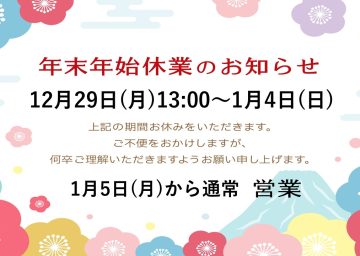 新着ニュース- 年末年始休業のお知らせ