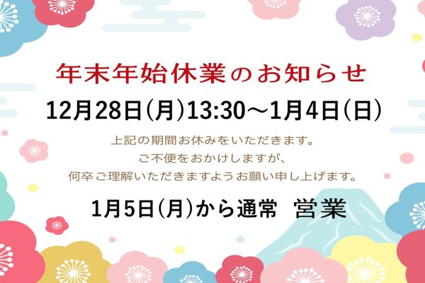 年末年始休業のお知らせ